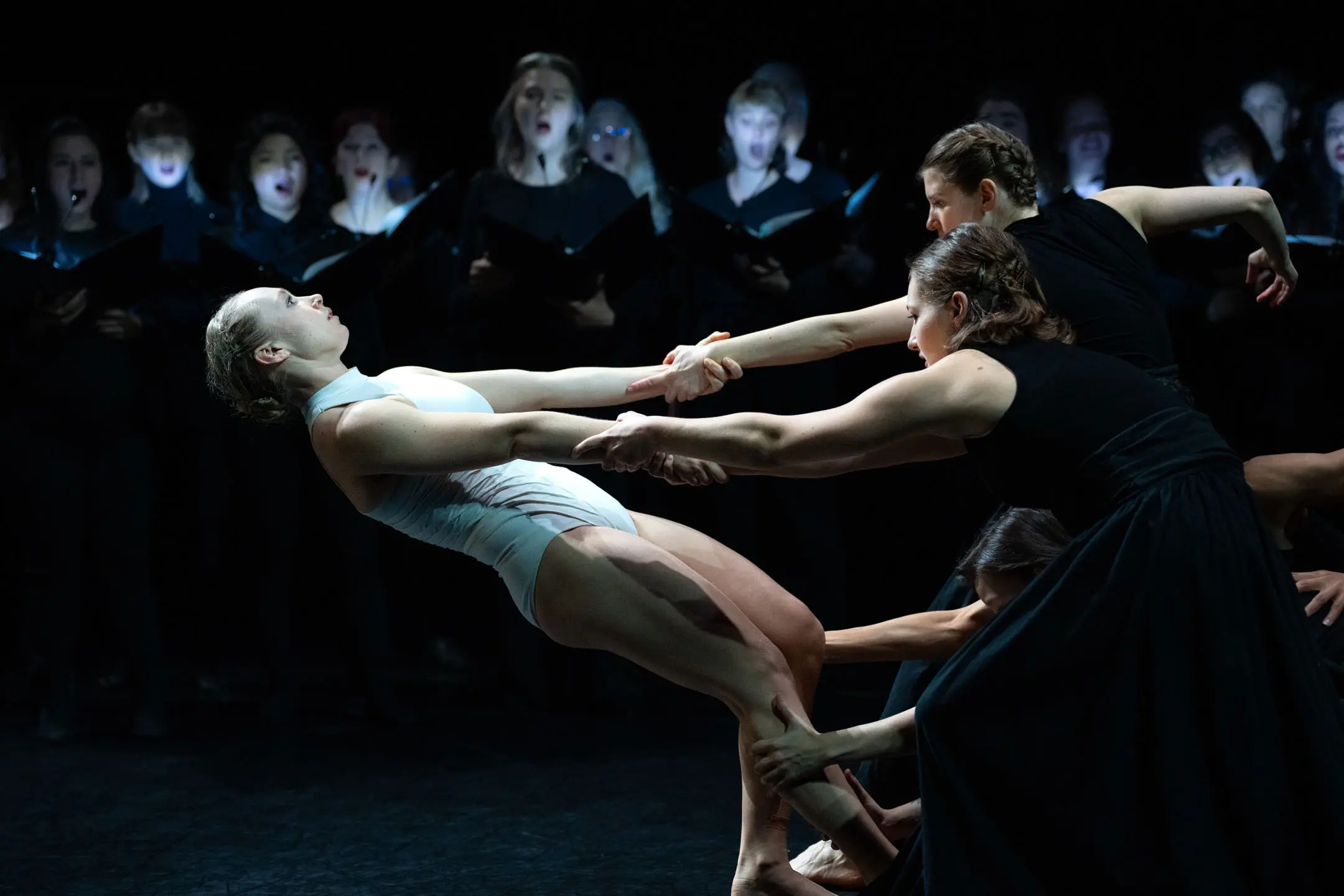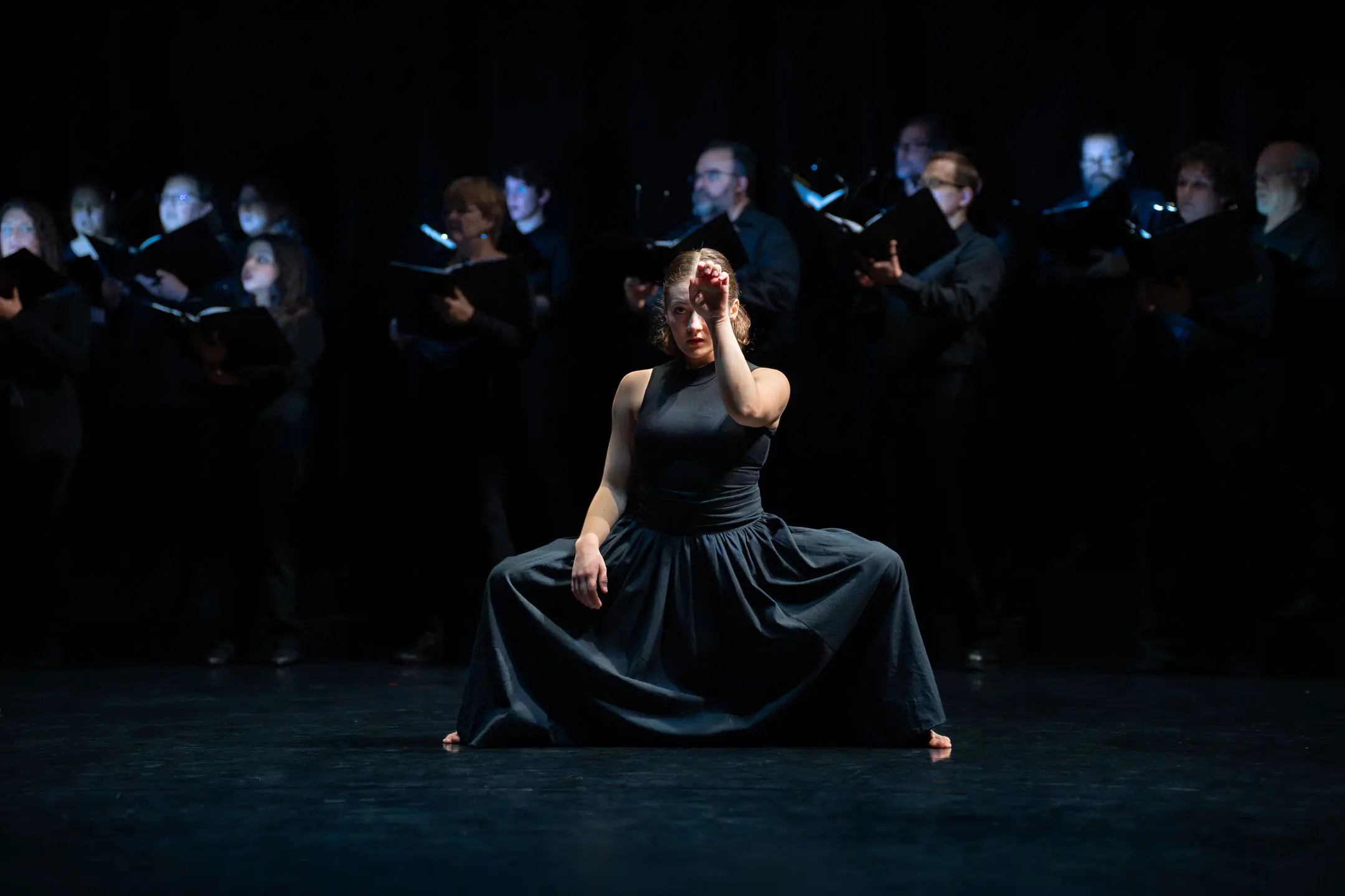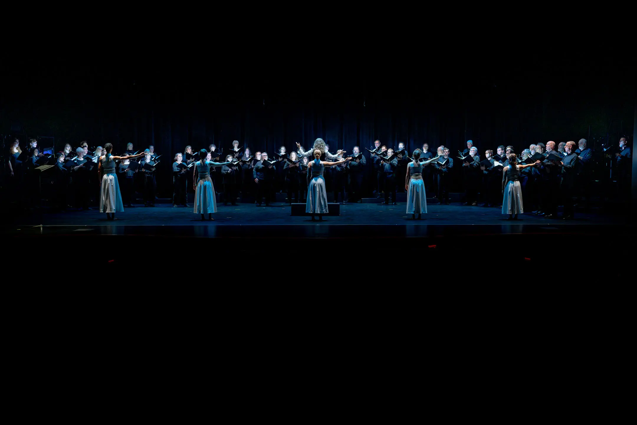 Counter to the traditional division of choir and dance, where one performs to the other, 'Vespers' interweaves the movement through the corridors of singers' bodies as a living stage. The concept: to reframe the historic connotations of the 'All-Night Vigil' away from the secular and towards the contemporary lens of artistic and personal reflection left by Sergei Rachmaninoff in his pivotal work.